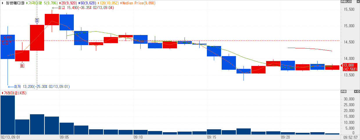 동방메디컬의 차트를 보면 눌림에 매수 타점을 잡았고
