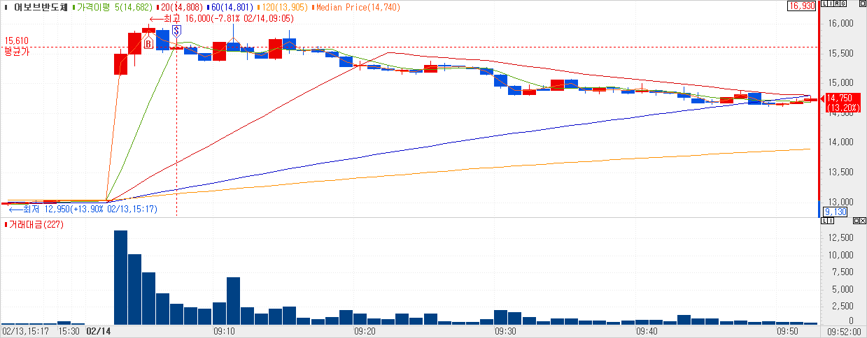 거래대금 상위종목에 제주반도체와 어보브반도체가 위치해 있었다. 비록 장 초반이라
